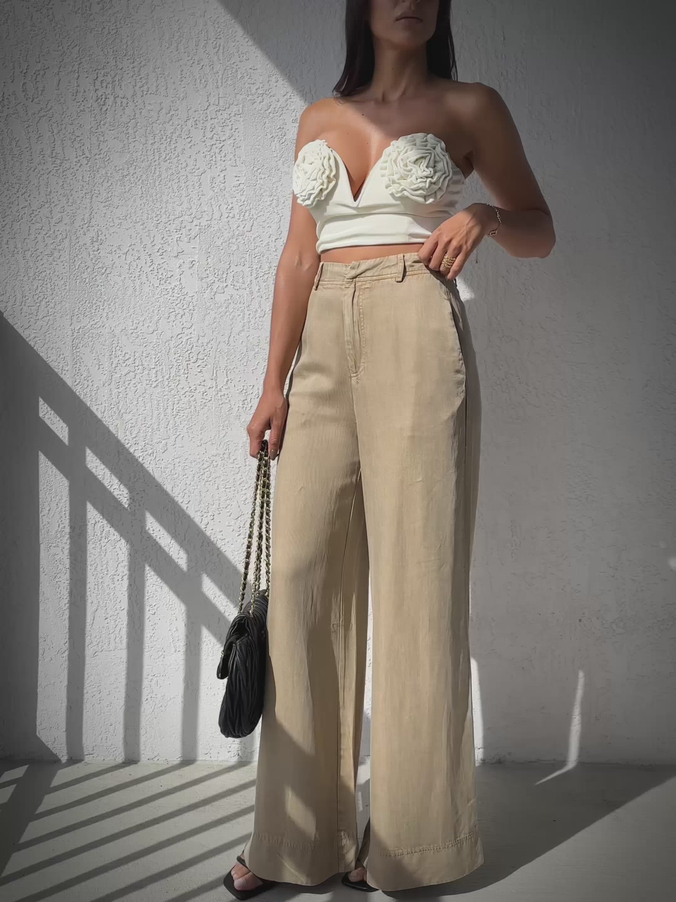 Crafted with a high-waisted cut and wide leg silhouette, the AMINA PANT from Frineshop offers an elegant and flattering fit. The luxurious elastic fabric ensures comfort, making them perfect for all-day wear.