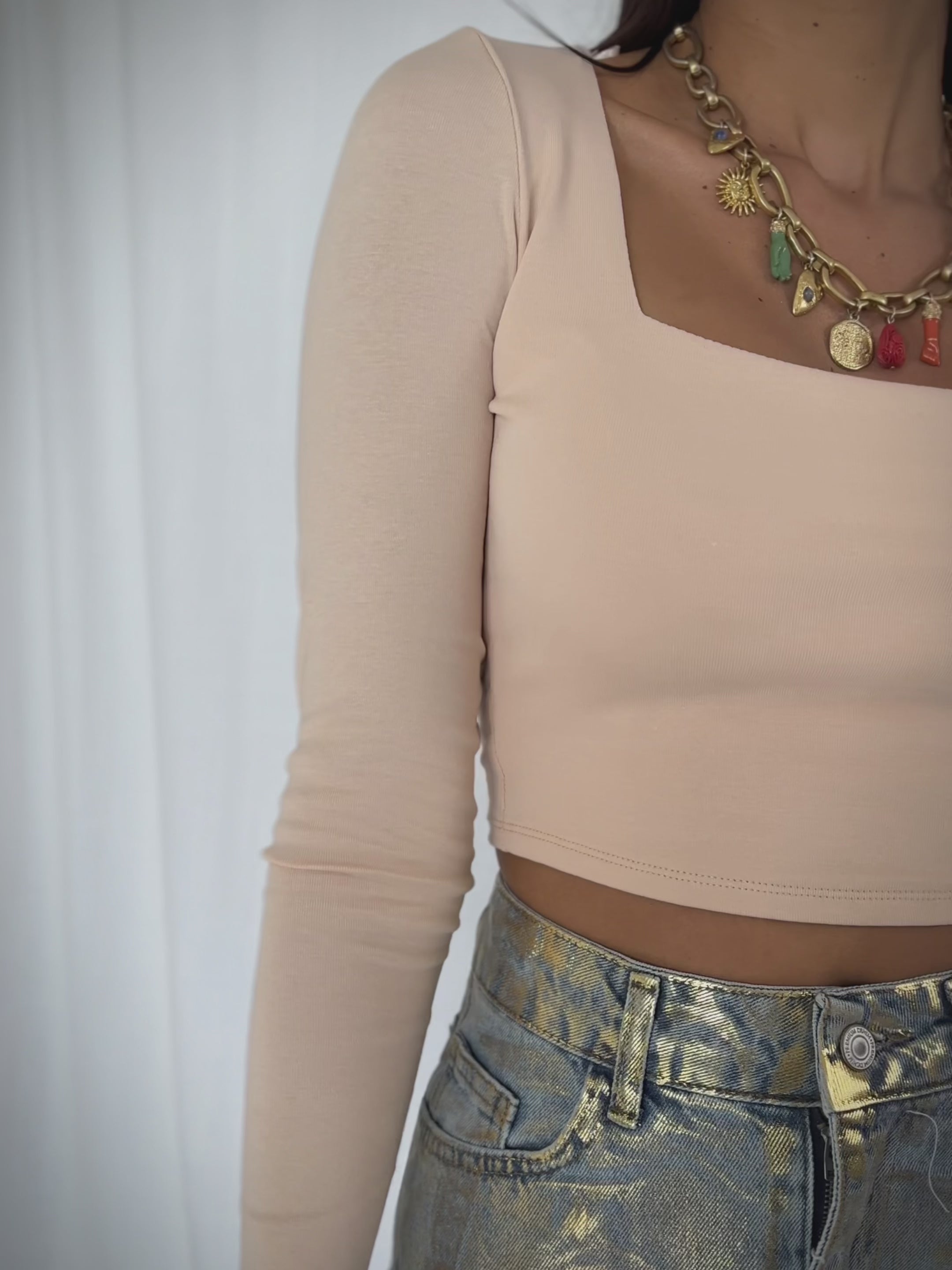 The Francesca Top is an innovative piece of apparel. Crafted from a soft beige fabric, it features long sleeves and a flattering silhouette. Perfect for work or a night out, this top is sure to become one of your wardrobe staples. Style FS1045.